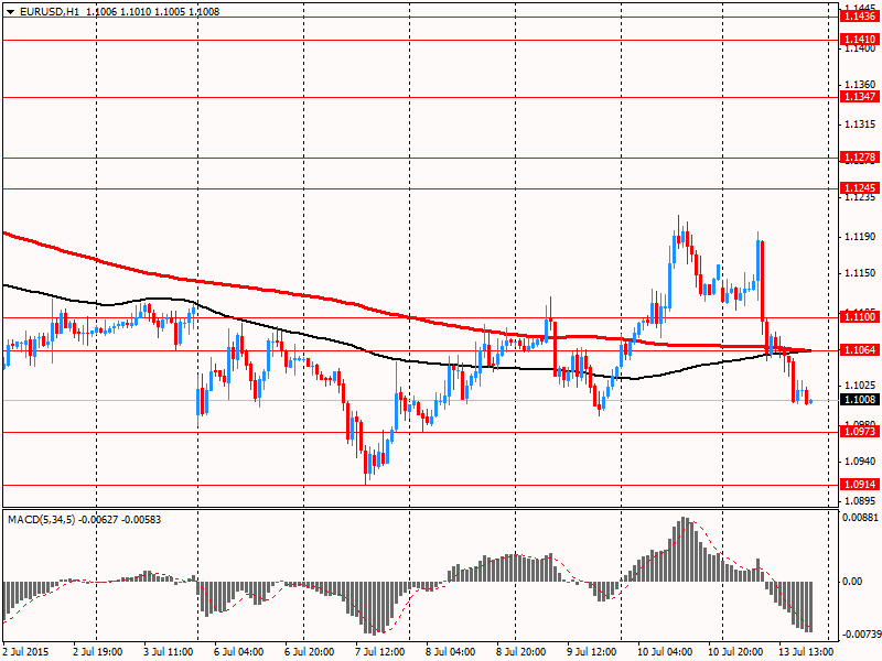 The euro depreciated significantly against the dollar, reaching a minimum of 9 de Julio. Experts say after eurozone leaders agreed on a new program to save Greece, investors have switched attention to the possibility of higher interest rates in the United States this year. Recall, last Friday, the head of the Federal Reserve Janet Yellen said that the central bank retains plans to raise interest rates this year. On Wednesday, Fed Chairman Yellen plans to address the Committee on Financial Services in Congress. Traders will closely monitor its performance, to get further guidance on the timing rise in US interest rates.