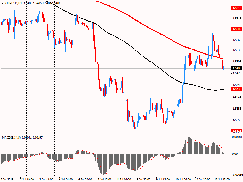 The pound fell moderately against the dollar, returning to the level of opening of the session. Recall GBP / USD pair reached session highs around $ 1.5590 after the announcement of an agreement between the EU and Greece, but bullish momentum quickly faded, and the pair began to fall. Experts say investors are gradually shift focus to tomorrow's report on inflation in Britain, and labor market data, which will be released on Wednesday. According to forecasts, the consumer price index rose 0.1% against + 0.2% in May, while the number of applications for unemployment benefits fell by 9 thousand., After declining by 6.5 thous. In May.