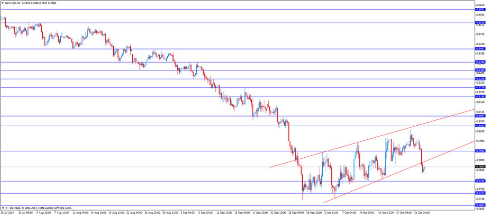 The New Zealand dollar fell against the U.S. dollar. In the overnight trading session, the kiwi dropped against the greenback after the consumer price inflation from New Zealand. New Zealand's consumer price inflation climbed 0.3% in the third quarter, missing expectations for a 0.5% rise, after a 0.3% gain in the second quarter.