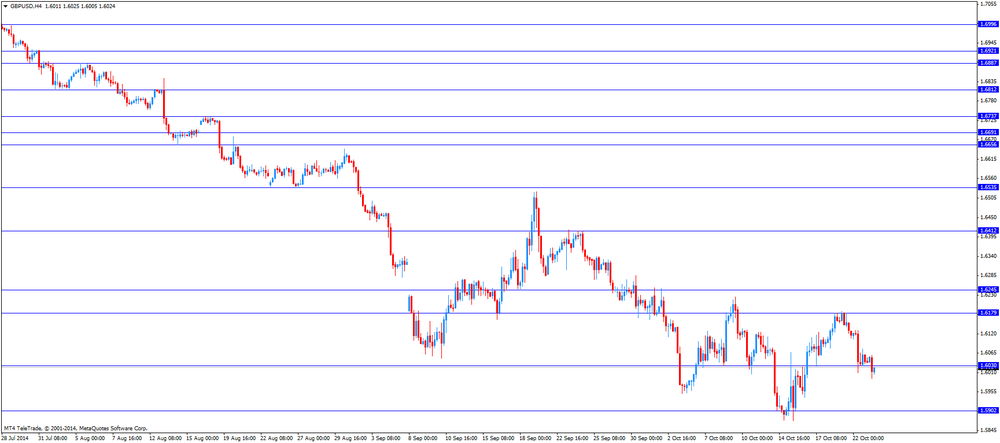The euro traded lower against the U.S. dollar. Eurozone's consumer confidence fell to -11.1 in October from -11.4 in September, beating forecasts for a decrease to -12.