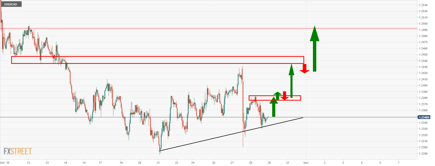 USD/CAD ha started to consolidate the weekly drop and there are bullish tendencies throughout the weekly, daily and hourly charts as displayed below within the following top-down analysis: