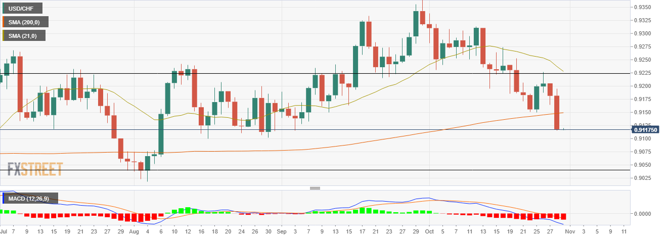USD/CHF licks wounds after the previous session’s heavy sell-off in the early Asian trading hours. After testing the high near 0.9194, the pair fell in more than a 70-pips movement in the US session. At the time of writing, USD/CHF is trading at 0.9117, down 0.01% for the day.
