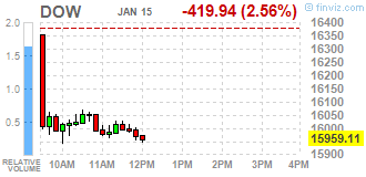 Major U.S. stock-indexes sank on Friday morning, with the Nasdaq hitting its lowest since Aug 24 and the Dow briefly dropping below 16000, as oil prices dived to less than $30 per barrel. Brent crude prices, which have fallen 20% this year, were down nearly 5% as the market braced for oil from Iran to flood an already oversupplied market. U.S. retail sales unexpectedly fell 0.1% in December, while industrial output declined for the third straight month in December, underscoring a worsening outlook for fourth-quarter economic growth.