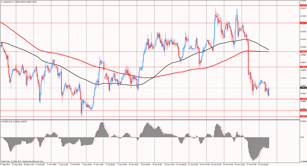 Resistance 2: Chf0.9090/95 (October 16 low, MA(200) and MA(100) H1)