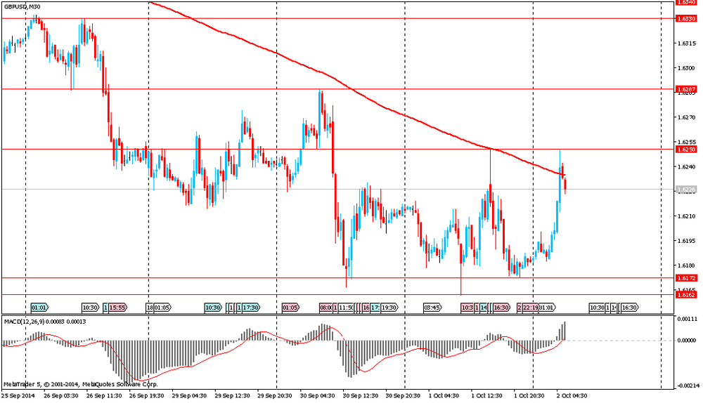 Resistance 2: $ 1.6285 (Sep 30 high, MA 200 H1)