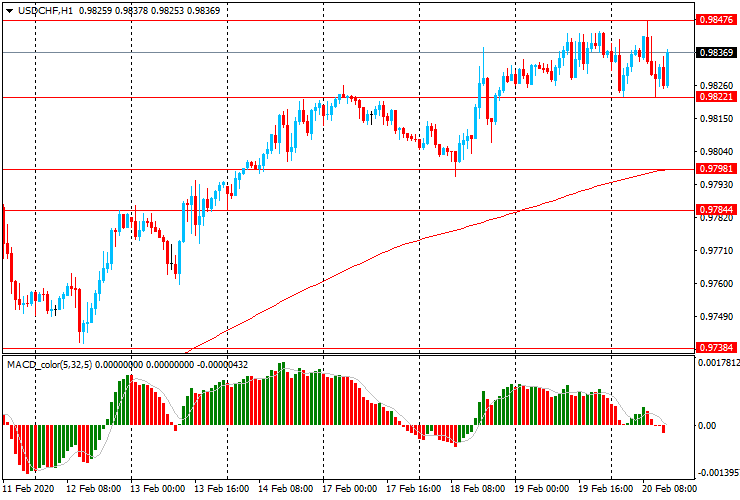 USD/CHF is trading in the range of Chf0.9820-50 - about a two-month high. The pair is trading above the moving average MA (200) H1 (Chf0. 9800) and on the four-hour chart significantly above MA (200) H4 (Chf0. 9725).