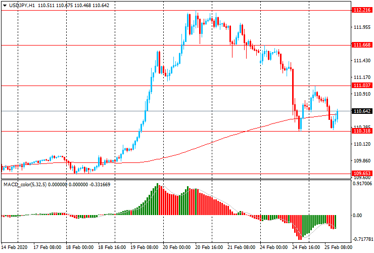 USD/JPY is down again after a slight recovery at the end of yesterday's trading and since the beginning of today's session. The pair fell to yesterday's low of Y110.30 after recovering to Y111.05. At the time of writing, USD/JPY rose slightly to Y110.70. On the hourly chart, the pair is testing the level of the moving average MA (200) H1 (Y110.60), and on the four-hour chart it is trading above MA (200) H4 (Y109.85).