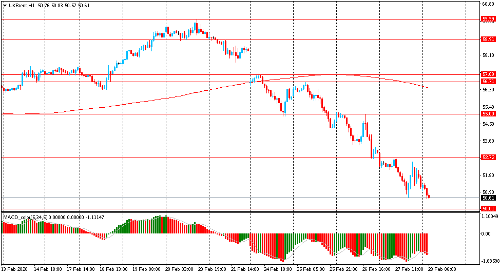 Yesterday, the price of Brent crude oil was once again declining and closed the day in the red zone near the price of $51.10. Today the oil also fell to $50.50, updating monthly lows. On the hourly chart, Brent is still trading below the MA (200) H1 moving average line ($56.40). On the four-hour chart, the situation is similar.
