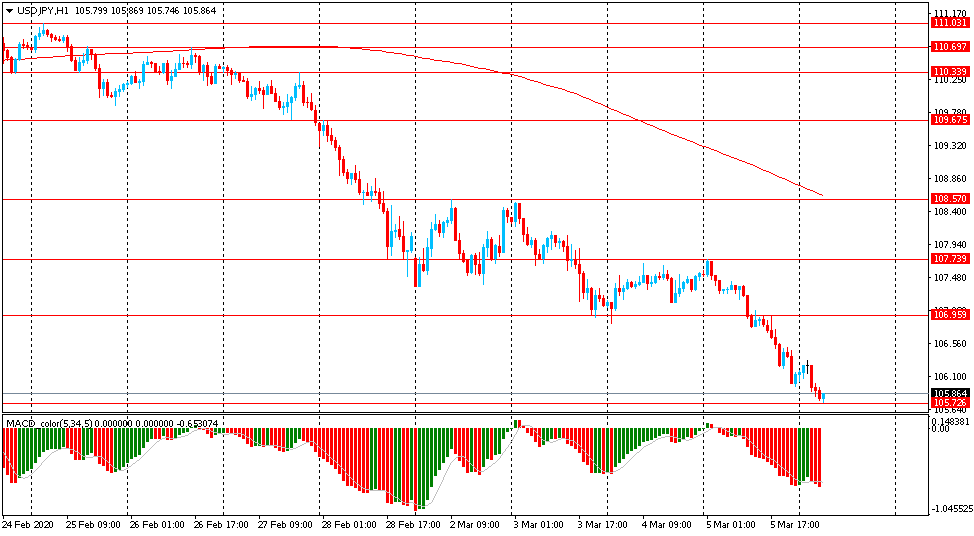Support levels are at: Y105.75, Y105.15, Y104.45