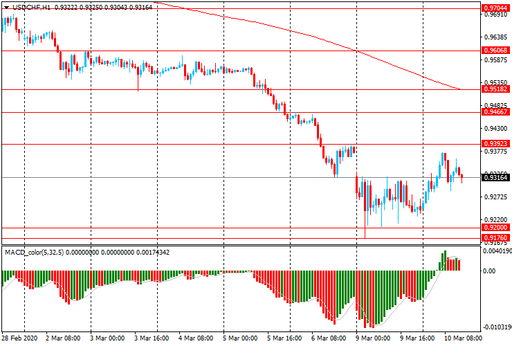 Today, since the beginning of trading, USD/CHF has increased from Chf0.9240 to Chf0.9370, retreating from the minimum value since mid -February 2018 (Chf0.9175) reached yesterday. Later, the pair declined slightly and during the European session is trading in the range Chf0.9285-0.9375. USD/CHF is trading below the moving average MA (200) H1 (Chf0. 9520) and on the four- hour chart below MA (200) H4 (Chf0.9690). It is worth noting that the 14-day relative strength index (RSI (14) on D1) is below the 30 level.