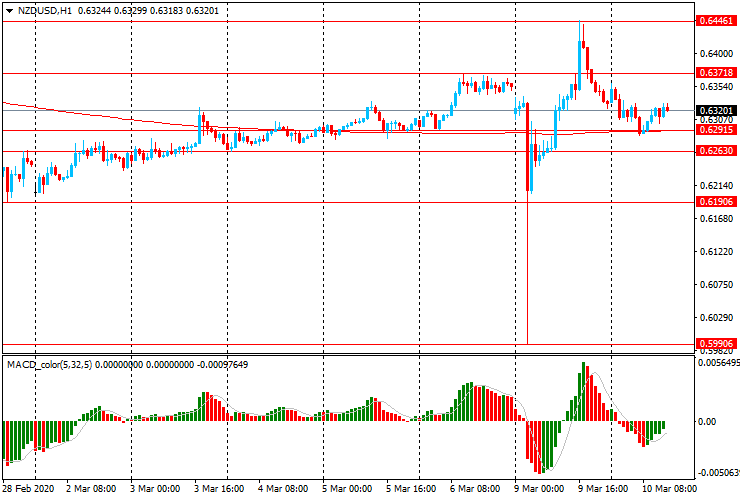 Today, NZD / USD is trading in the range of $0.6285-0.6360 after yesterday 's significant volatility. Yesterday, the pair fell to a multi-year low of $0.5990 from the beginning of trading, but soon returned all the lost positions and rose to the maximum of February 14-17 ($0.6445). Later, the pair closed trading around $0.6320. On the hourly chart, the pair is trading above the moving average MA (200) H1 ($0.6290), but on the four-hour chart, the kiwi is trading well below MA (200) H4 ($0.6400).