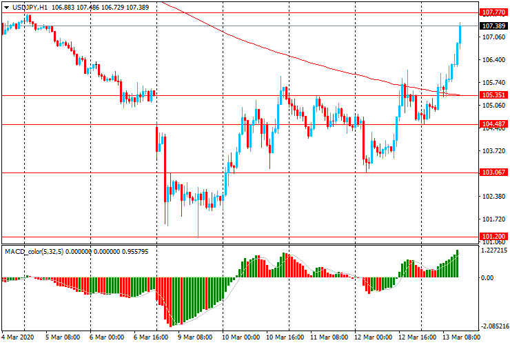 Today, USD/JPY is trading with an increase from Y104.50 to Y107. 30, almost reaching a one -week high (Y107. 40). The pair rose above the moving average level of MA (200) H1 (Y105. 35), but on the four-hour chart it is trading below MA (200) H4 (Y108. 60).