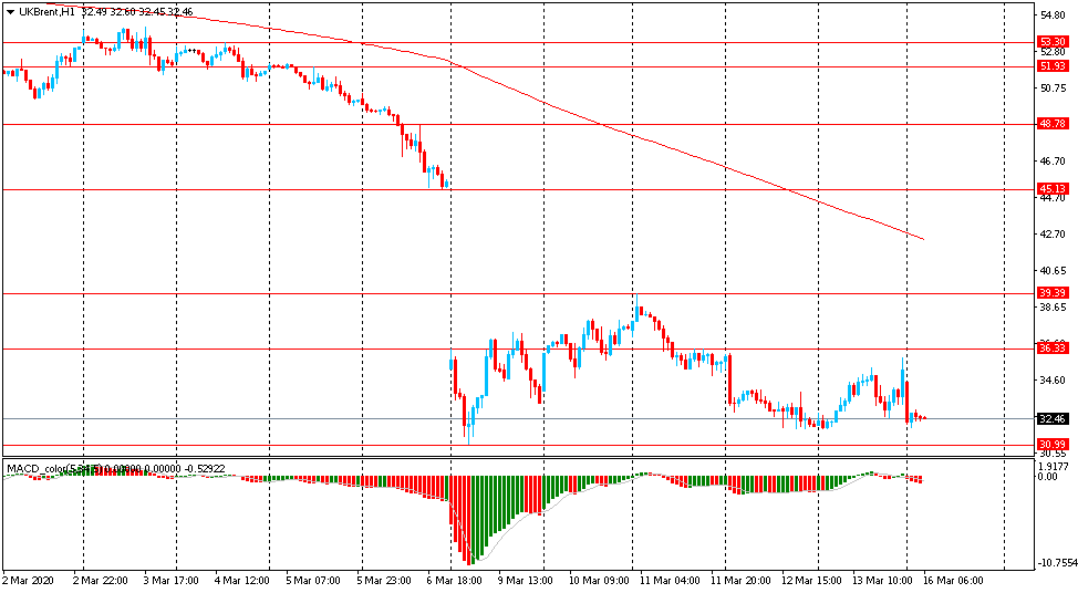 On Friday, the price of Brent crude rose slightly. Today, oil again fell and fell to around $32.40. On the hourly chart, Brent is still trading well below the MA (200) H1 moving average line ($42.00). On the four-hour chart, the situation is similar.