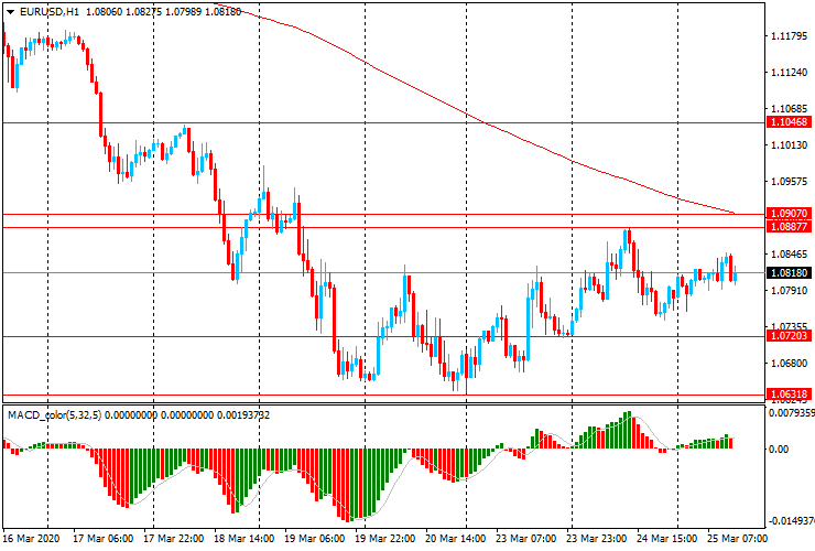 Today, the EUR / USD pair is trading mainly with growth in the range of $1.0760-1.0890, further retreating from the minimum since mid -April 2017 ($1.0635) reached last week. On the hourly chart, the Euro is trading below the moving average of MA (200) H1 ($1.0910), and on the four- hour chart below MA (200) H4 ($1.0980).
