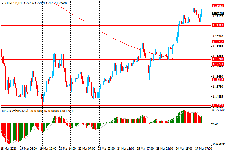 Today, the GBP/USD is trading in the range of $1.2130-1.2310-near the maximum on March 17 ($1.2270). On the hourly chart, the pound rose above MA (200) H1 ($1.1820), but on the four-hour chart, it continues to trade well below MA (200) H4 ($1.2610).