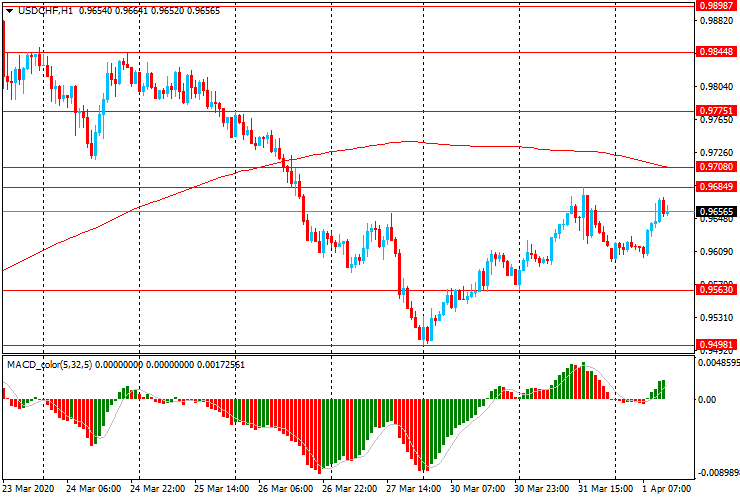 Today, the USD/CHF is again trading with growth, almost regaining the positions lost at the end of yesterday's trading. The pair rose from Chf0.9600 to Chf0.9670 after falling at the end of yesterday's US trading from Chf0.9685 to Chf0.9600. On the hourly chart, the pair is trading below the moving average of MA (200) H1 (Chf0.9710), but on the four-hour chart, it is testing MA (200) H4 (Chf0.9640).