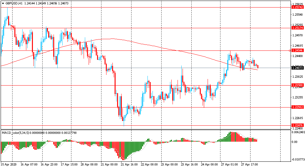 Yesterday, the GBP/USD was trading higher and closed the day in positive territory near the price of $1.2420. On the hourly chart, GBP/USD has been testing resistance for strength since yesterday - the MA (200) Н1 moving average line ($1.2400). On the four-hour chart, it remains above the MA 200 H4 line.