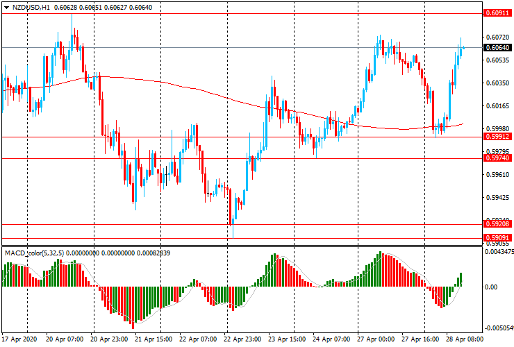 Today, since the beginning of trading, the NZD/USD pair has fallen sharply to $0.5990, testing the strength of the MA (200) H1 ($0.6000) moving average. But soon the pair rose sharply, regaining all the lost positions and reaching yesterday's high of $0.6075. On the four-hour chart, the pair is also trading above MA (200) H4 ($0.5960).