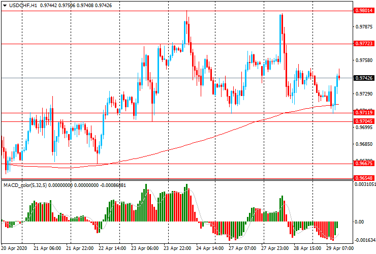 Today, the USD/CHF pair is trading without a certain direction: after falling from the beginning of trading to Chf0. 9710, the pair rose to Chf0.9750, completely regaining the lost positions. On the hourly chart, the pair is trading above the moving average of MA (200) H1 (Chf0. 9720), and on the four-hour chart above MA (200) H4 (Chf0. 9690)
