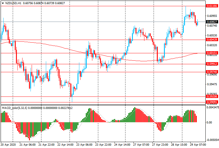 Today, since the beginning of trading, the NZD/USD pair has grown sharply from $0.6050 to $0.6115. Later, the pair lost some of its positions and fell to $0.6075. On the hourly chart, the pair is trading above the moving average line MA (200) H1 ($0.6015) and on the four-hour chart above MA (200) H4 ($0.5955).