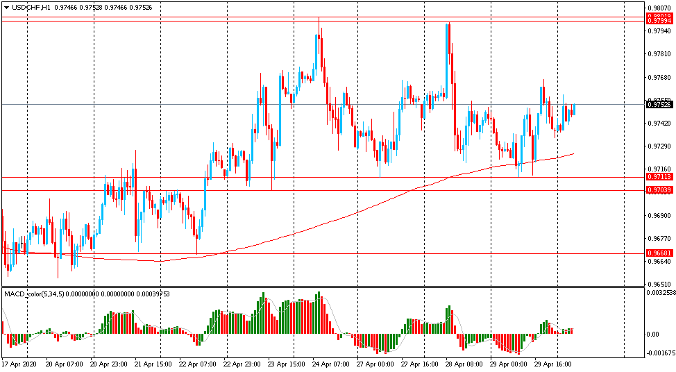 Yesterday, the USD/CHF was trading in different directions in the range Chf0.9710-Chf0.9765 and closed the day without significant changes. Today it also traded in a narrow range of Chf0.9740-55, remaining near yesterday's closing price. On the hourly chart, USD/CHF is still trading above the MA (200) H1 moving average line (Chf0.9725). On the four-hour chart, the situation is similar.
