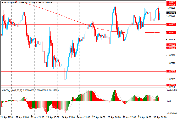 Today, the EUR / USD pair is trading without a certain direction in the range of $1.0850-90. On the hourly chart, the pair rose above the level of the moving average MA (200) H1 ($1.0835), but it failed to gain a foothold above the MA (200) H4 ($1.0890) line.