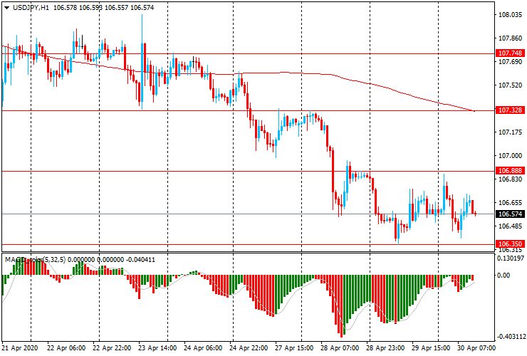 Today, the USD/JPY is trading without a certain direction, remaining within yesterday's Y106.35-90 range. At the time of writing, the pair is trading around Y106. 55. On the hourly chart, the pair fell below the moving average MA (200) H1 (Y107.30), and on the four-hour chart below MA (200) H4 (Y108. 20)