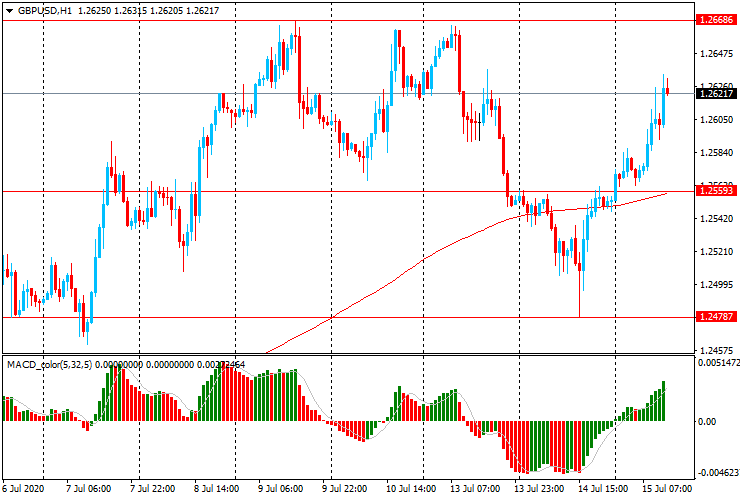 The GBP / USD pair is trading with growth, regaining most of the positions lost since the beginning of the week. The pair rose to $1.2635, after falling on Monday-Tuesday from $1.2670 to $1.2480. The pair again rose above the moving average line MA (200) H1 ($1.2560) and on the four - hour chart-above MA (200) H4 ($1.2525).