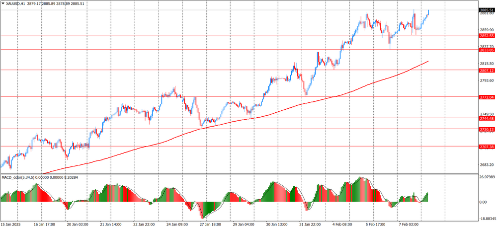 On Friday, the XAU/USD pair was trading in the range of 2852-2886, but closed the session near the price of 2862. Gold started trading higher today, breaking out to a historic high of 2886. On the hourly chart, XAU/USD remains above the MA (200) H1 (2819) moving average line and above MA (200) H4 (2715) on the four-hour chart. Based on the above, it is probably worth sticking to the northern direction in trading and as long as gold remains above the MA 200 H1, it is necessary to look for entry points to buy.