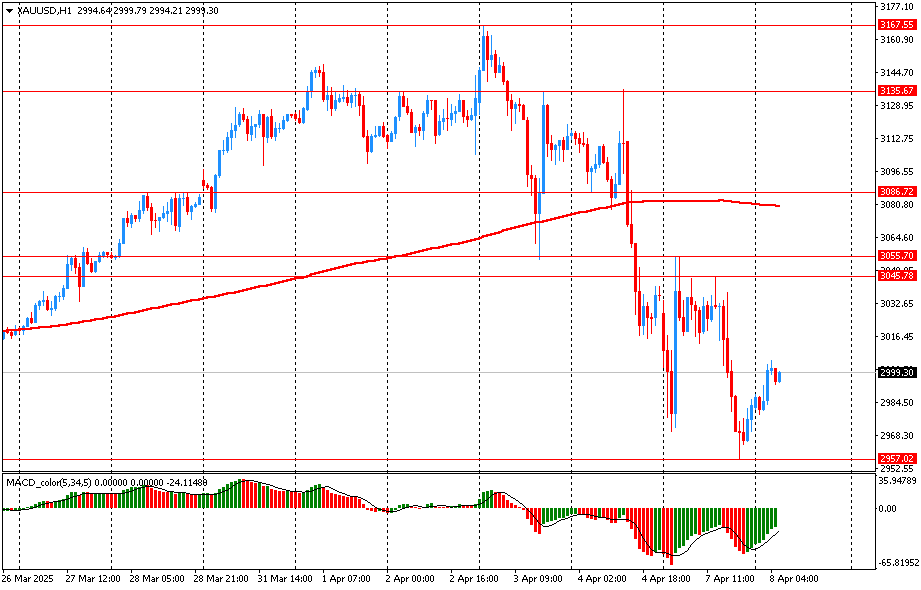 Yesterday, the XAU/USD traded lower and closed the day in the red zone near the price of 2981. Today, gold, on the contrary, rose slightly, rising to the 3004 mark. On the hourly chart, XAU/USD is trading below the moving average line MA (200) H1 (3080). The situation is similar on the four-hour chart. Based on the above, it is probably worth sticking to the southern direction in trading and while gold remains below MA 200 H1, it may be necessary to look for entry points for selling to form a correction.