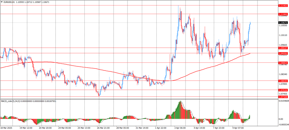 Today, there is a steady upward movement on the hourly chart of EUR/USD after the formation of support in the area of 1.0955. The price broke above the MA (200) H1 moving average (1.0930), which is a bullish signal and indicates a change in the medium-term mood towards purchases. At the moment, the pair is trading around 1.1065, approaching the resistance level of 1.1105. In case of a confident breakdown of this level, further movement to the next significant resistance in the area of 1.1145 is possible. The MACD is showing positive dynamics, with green histograms and rising values, which confirms the current upward momentum. The nearest support is now located at 1.0955, and then in the 1.0930 zone, where the MA (200) H1 also passes, acting as dynamic support.
