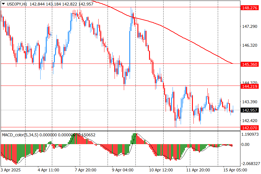 The alternative scenario assumes a breakout of the resistance of 144.20 (high of the American session on April 11), an increase to MA (200) H1 (145.35) and there may be an increase to 148.30 (April 9 high)
