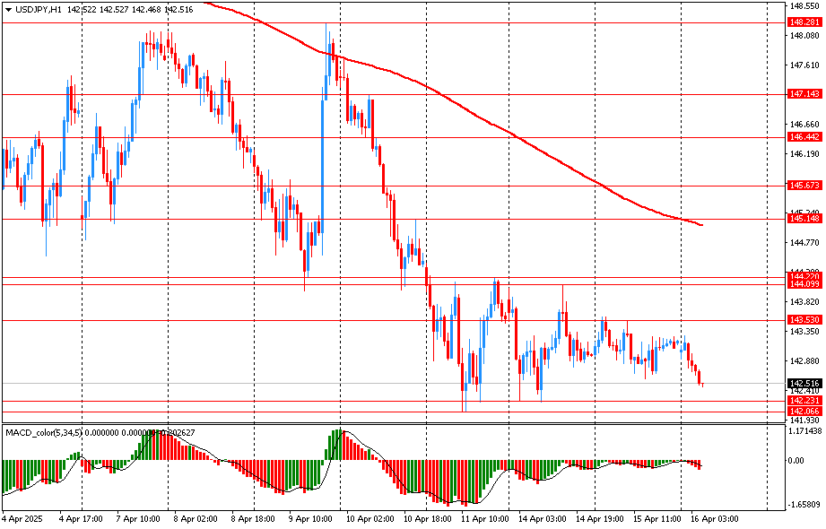 Probably, the main scenario is a continuation of the downward movement to 142.25 (Apr 14 low).