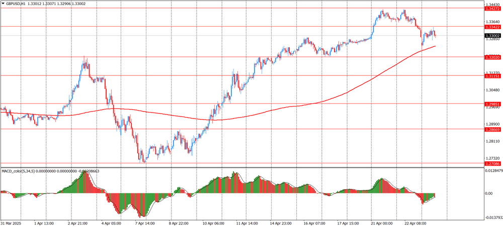 Today, an uptrend is observed on the hourly chart of GBP/USD, which formed after the breakdown and consolidation above the MA (200) H1 moving average (1.3250). However, in recent hours, the price has been correcting downwards from the resistance level of 1.3430 and is approaching support in the area of 1.3200, where the moving average is also located, which can act as a support level. A rebound from it may signal a continuation of the uptrend. In case of a breakdown downwards, it is possible to move to a deeper correction with a target at 1.3115. The MACD indicator shows signs of a reversal: the histogram, which was previously in the negative zone, reduces the negative values, and the signal lines begin to converge, indicating a possible slowdown in the downward momentum and a potential return of purchases.