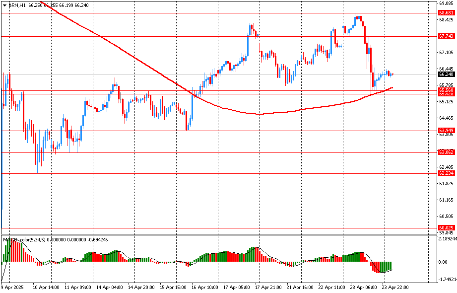 Yesterday, Brent crude oil traded lower and closed the day in the red zone near the price of 66.25. Today, oil traded in a narrow range of 66.05-40, remaining near yesterday's closing price. On the hourly chart, Brent is still testing the resistance - the MA (200) H1 moving average line (65.65). On the four-hour chart, oil is still below the MA 200 H4 line. Based on the above, it is probably worth sticking to the southern direction in trading and while Brent remains below the MA 200 H1, it may be necessary to look for entry points for sale at the end of the correction.