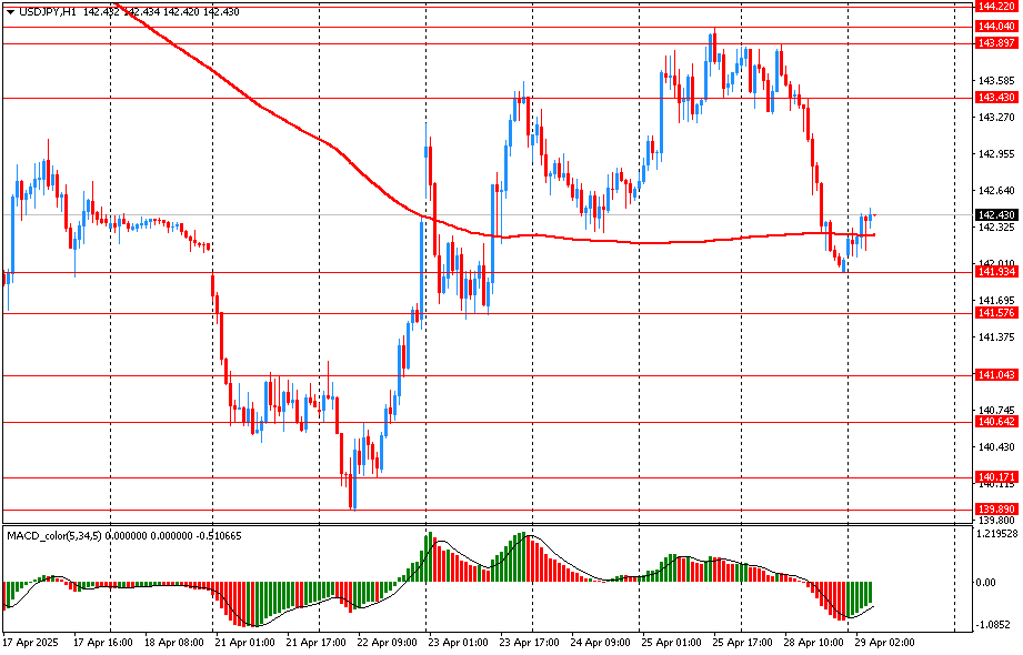 Yesterday the USD/JPY traded down and closed the day in the red zone near the price of 141.95. Today it on the contrary slightly rose, rising to the mark of 142.50. On the hourly chart USD/JPY is again trading below the moving average line MA (200) H1 (142.25). On the four-hour chart the situation is similar. Based on the above, it is probably worth sticking to the southern direction in trading and while the pair remains below MA 200 H1, it may be necessary to look for entry points for sale to form a correction.