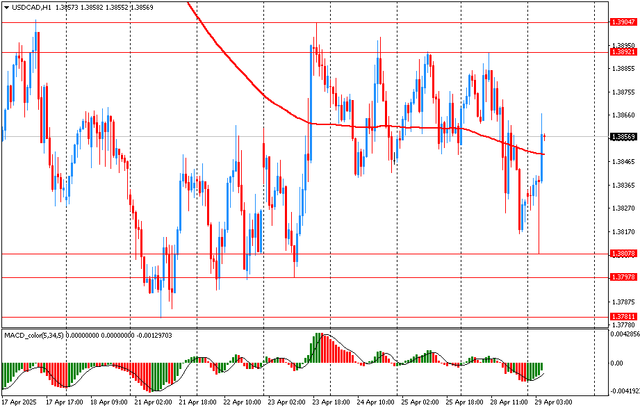 Yesterday the USD/CAD traded lower and closed the day in the red zone around 1.3830. Today it has risen slightly, rising to 1.3865. On the hourly chart USD/CAD is testing resistance again - the MA (200) H1 (1.3850) moving average line. On the four-hour chart the pair is still below the MA 200 H4 line. Based on the above, it is probably worth sticking to the southern direction in trading and while the pair remains below MA 200 H1, it may be necessary to look for entry points for selling to form a correction.