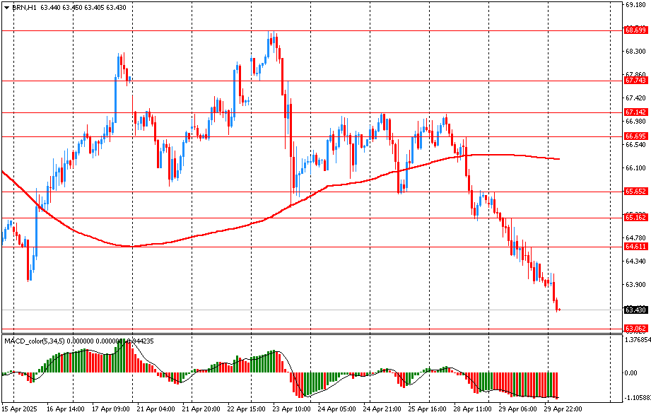 Yesterday, Brent crude oil traded lower and closed the day in the red zone around 63.85. Today, oil also fell slightly, falling to 63.40. On the hourly chart, Brent is trading below the moving average MA (200) H1 (66.30). The situation is similar on the four-hour chart. Based on the above, it is probably worth sticking to the southern direction in trading and while Brent remains below MA 200 H1, it may be necessary to look for entry points for selling to form a correction.