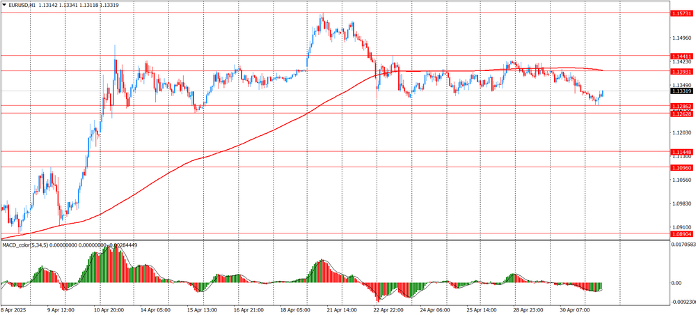 Today, the hourly chart of EUR/USD shows a consolidation phase after a decline. The price is trading near the 1.1330 level, remaining below the MA (200) H1 moving average (1.1395), which indicates a predominance of bearish sentiment. The MACD indicator shows weak dynamics, the histogram is approaching zero, which confirms the absence of a pronounced impulse. The overall picture indicates uncertainty with a possible continuation of the downward trend in the event of a breakdown of local lows. An important level for buyers will be the return and consolidation above 1.1395.