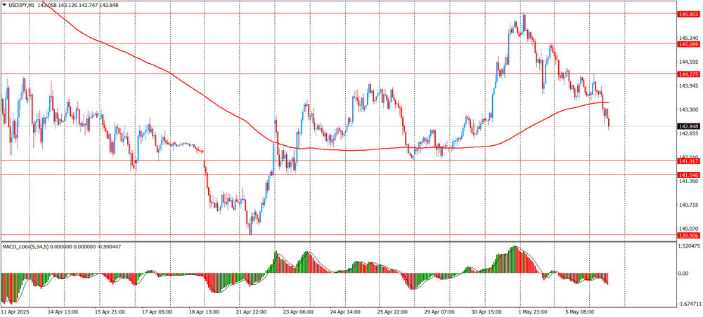 Today, on the hourly chart, USD/JPY is under pressure after a recent decline below the level of 143.30 and the breakdown of the MA (200) H1 moving average, which indicates a possible development of a downward momentum. The price rebounded from the resistance around 145.10 and turned downwards, forming a series of lowered highs. The MACD indicator has moved into the negative zone, reinforcing the signals of bearish dynamics. In case of consolidation below the current level of 142.85, the next target may be support at 141.90, and then 141.55. Growth is possible only if it returns above 143.30 and then overcomes 144.30, which so far looks unlikely without a change in current sentiment. The overall picture indicates the resumption of a downward correction after a period of growth.