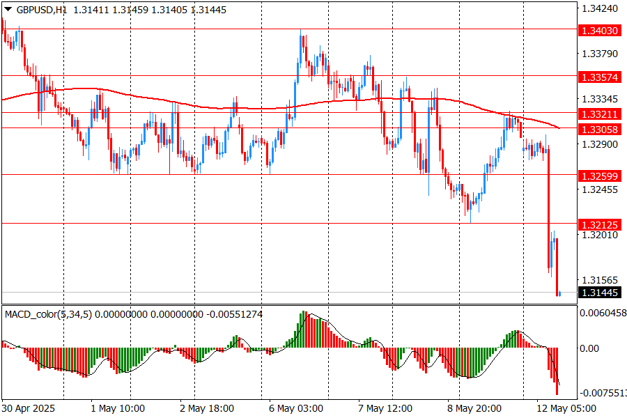 The hourly chart of GBP/USD shows a sharp decline, as a result of which the pair broke through several support levels in a row, including 1.3260 and 1.3210, and is currently trading around 1.3145. This indicates high volatility and increased bearish pressure. The pair dropped to a monthly low, and the price fixed well below the MA (200) H1 moving average, which confirms a steady downward trend. The MACD indicator reinforces the negative signal: the histogram expands in the negative zone, indicating an acceleration of the downward momentum. The absence of signs of a reversal confirms the likelihood of further decline. The overall picture remains bearish, with downside risks prevailing in the short term.