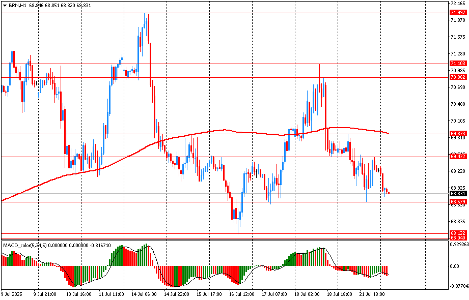 Yesterday, Brent crude oil traded lower and closed the day in the red zone near the price of 69.20. Today, oil also fell slightly, falling to the 68.80 mark. On the hourly chart, Brent is trading below the moving average line MA (200) H1 (69.85). The situation is similar on the four-hour chart. Based on the above, it is probably worth sticking to the southern direction in trading and while Brent remains below MA 200 H1, it may be necessary to look for entry points for selling to form a correction.