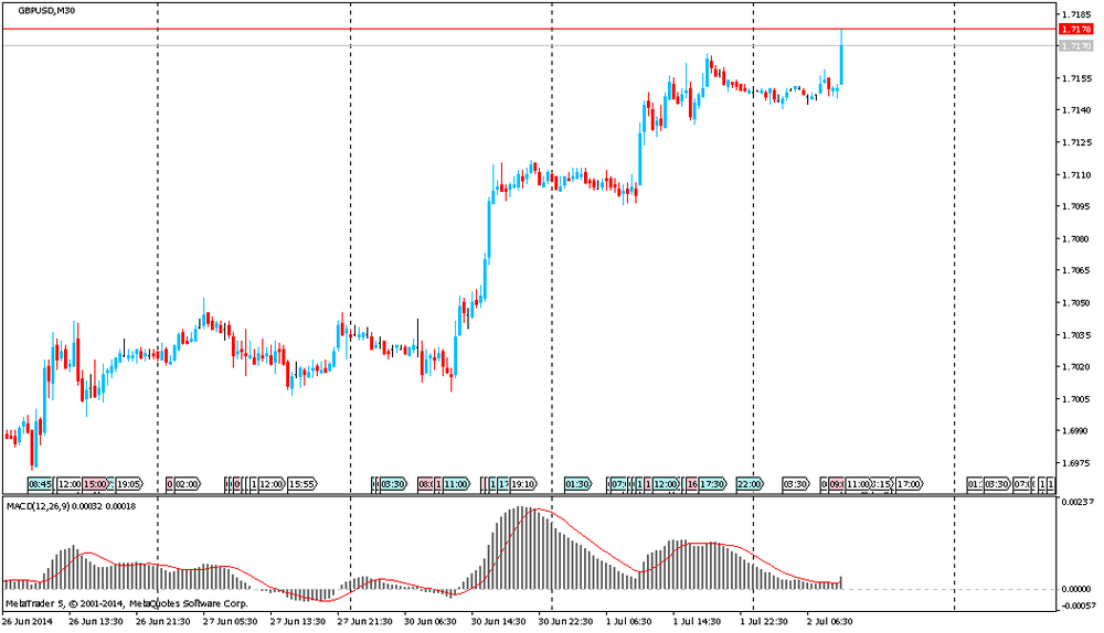 La libra subió a 1,7178 dólares, actualizando el máximo anual tras la publicación de los datos positivos sobre el índice de actividad empresarial en el sector de la construcción del Reino Unido. La cifra de junio fue del 62,6, mientras que el valor anterior y las expectativas de los analistas estaban en 59,7-60,0. Así, los datos superaron las estimaciones de los expertos, lo cual apunta al crecimiento económico en el sector de la construcción del Reino Unido.