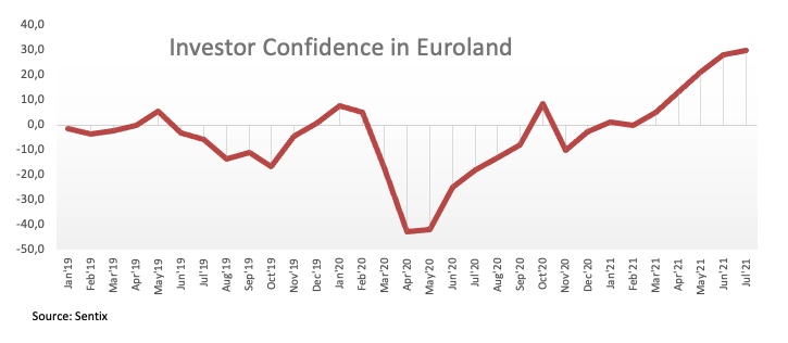 Los vendedores no lograron arrastrar el EUR/USD más al abajo de 1.1800 la semana pasada. Mientras tanto, se espera que la acción de los precios en torno al terreno siga exclusivamente la dinámica del dólar, particularmente después de que la última reunión del FOMC respaldara las perspectivas de una mayor inflación y posibles reducciones en el programa de compras. El apoyo a la moneda europea se produce por datos auspiciosos, un fuerte repunte de la actividad económica y el apetito de los inversores por activos más riesgosos.