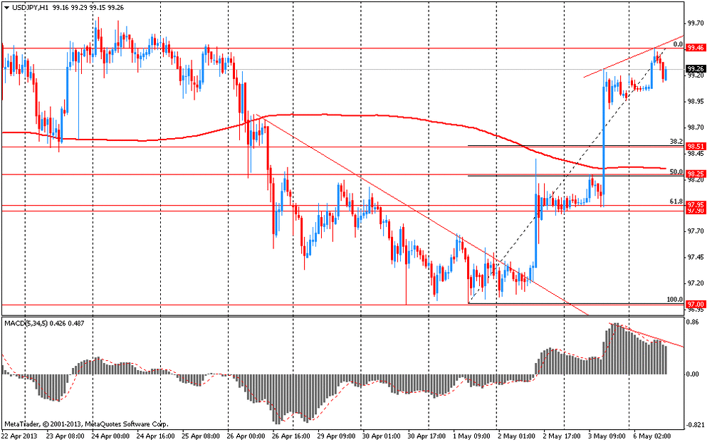 El yen perdió valor frente al dólar frente a los signos de recuperación en la economía de EE.UU.. La moneda japonesa se negocia cerca del nivel de Y99 al dólar, después de que el 3 Departamento de Trabajo de EE.UU. de mayo mostró que a finales del mes pasado, el número de personas empleadas en sectores no agrícolas de la economía ha aumentado considerablemente, y la tasa de desempleo se redujo de nuevo, que cada vez más apunta a un crecimiento económico sostenido. Según el informe, en abril se añadieron 165.000 puestos de trabajo, en comparación con la cifra del mes anterior en el nivel de 138 mil.
