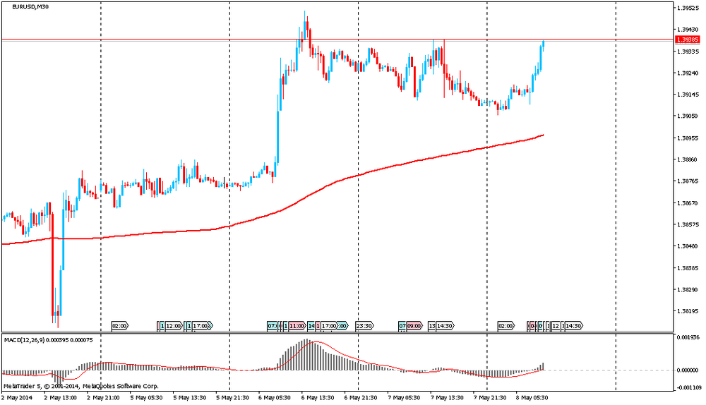El euro subió, tocando el máximo de ayer en 1,3938 dólares a la espera de los resultados del Banco Central Europeo y el discurso de Mario Draghi . A pesar de que la pareja estea tratando de crecer, su futuro dependerá de los comentarios de Draghi . Todas las declaraciones relativas a que el crecimiento agresivo del euro puede tener un el impacto negativo en la economía de la zona del euro pueden tener un impacto negativo en la dinámica de la moneda única. El BCE aún no está seguro de si la región necesita más medidas de estímulo . Hoy en la rueda de prensa, Draghi puede actuar como un catalizador , lo cual desató los niveles de avance de soporte y resistencia .
