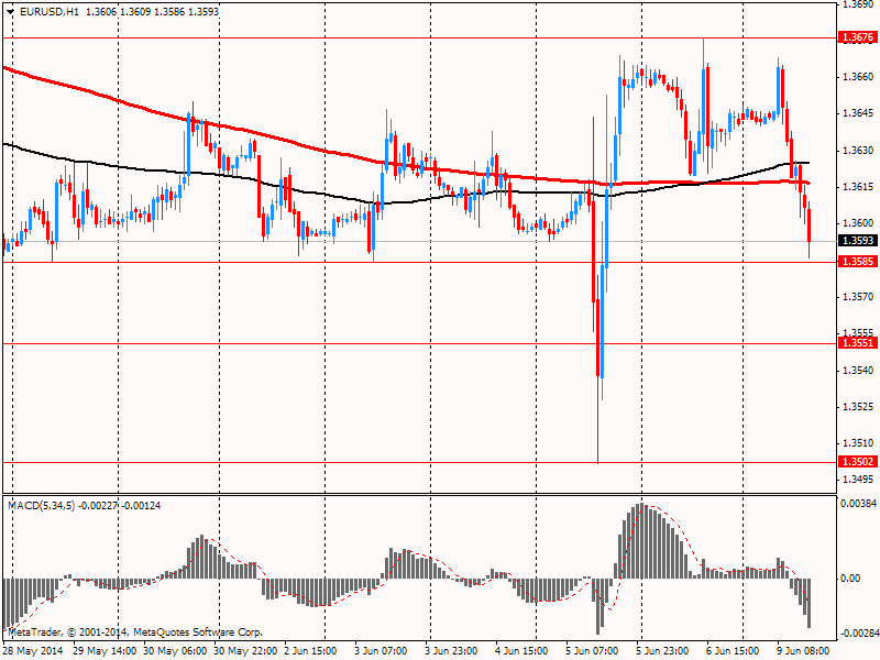 El par se está negociando a 1,3593 dólares. Soporte importante - 1.3502 (mínimo del 5 de junio), y la resistencia - 1.3676 (máximo del 6 de junio).