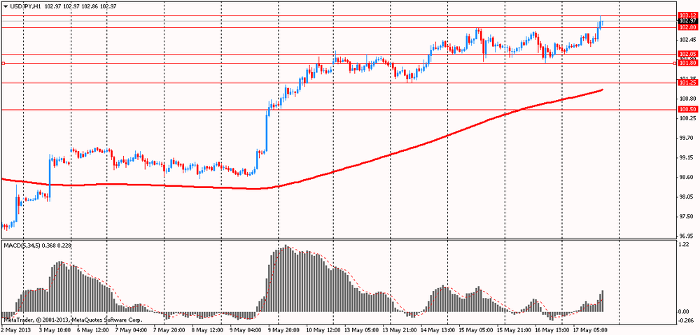 El dólar se fortaleció frente a las principales divisas en previsión de unsa estadísticas positivas. De acuerdo con los pronósticos de los economistas, el índice de indicadores líderes de los EE.UU. es probable que aumente en un 0,2%. Recordemos que en marzo, el índice cayó un 0,1%. El índice de confianza del consumidor de Thomson Reuters / Universidad de Michigan también puede crecer hasta 77,9 este mes desde 76,4 en abril. Todas las estadísticas se publican hoy por tarde.