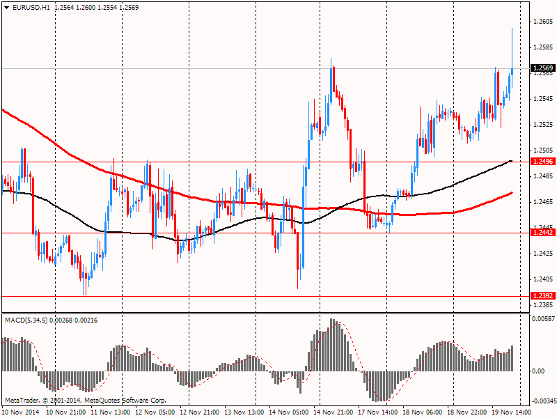 Según Mizuho Securities (Tokio), después de la desición tomada el martes por el primer ministro de Japón de prorrogar el aumento del impuesto de ventas y anticipar elecciones y teniendo en la consideración la dinámica fuerte de los mercados de valores europeos y americanos, el par USD/JPY va a comerciarse con la tendencia de alza. El banco comenta: "En general se ha notado el deseo de arriesgarse, el dolar y el yen se ha vendido". Hoy llamarán la atención la sesión del Consejo de dirección del Banco de Japón y la conferencia de prensa de su director Kuroda. El yen puede seguir bajándose si Kuroda comunica que el Banco Central continuará suavizando su política en caso de necesidad, en especial después de la presentación el lunes de los datos negativos del PIB de Japón.