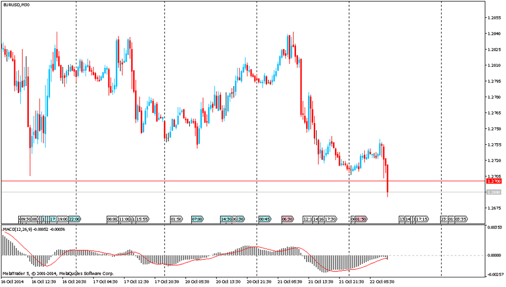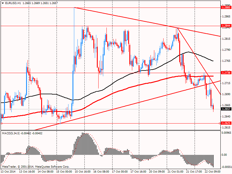 El euro continúa su caída de ayer en medio de las noticias de que el BCE podría iniciar el proceso de compra de bonos corporativos. El mercado ha percibido esta noticia como una confirmación de que las autoridades están preparadas para lanzar el programa QE. Las perspectivas de implementación de nuevas medidas de estímulo junto con los datos positivos de EE.UU., publicados ayer, presionaron al euro y lo enviaron por debajo de 1,27 dólares. El próximo soporte posiblemente se encuentra cerca de $ 1.2675, $ 1.2625 y $ 1.2545.